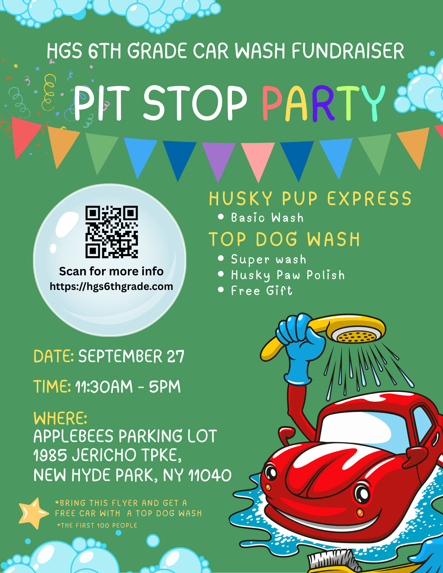 Every wash helps our 6th graders raise funds for memorable activities, including their end-of-year school trip and dance. Come enjoy a clean car while making a difference for our students!